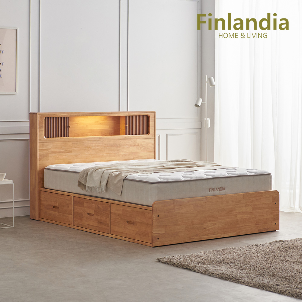 - 핀란디아 넬슨 LED 원목 수납침대 퀸Q
