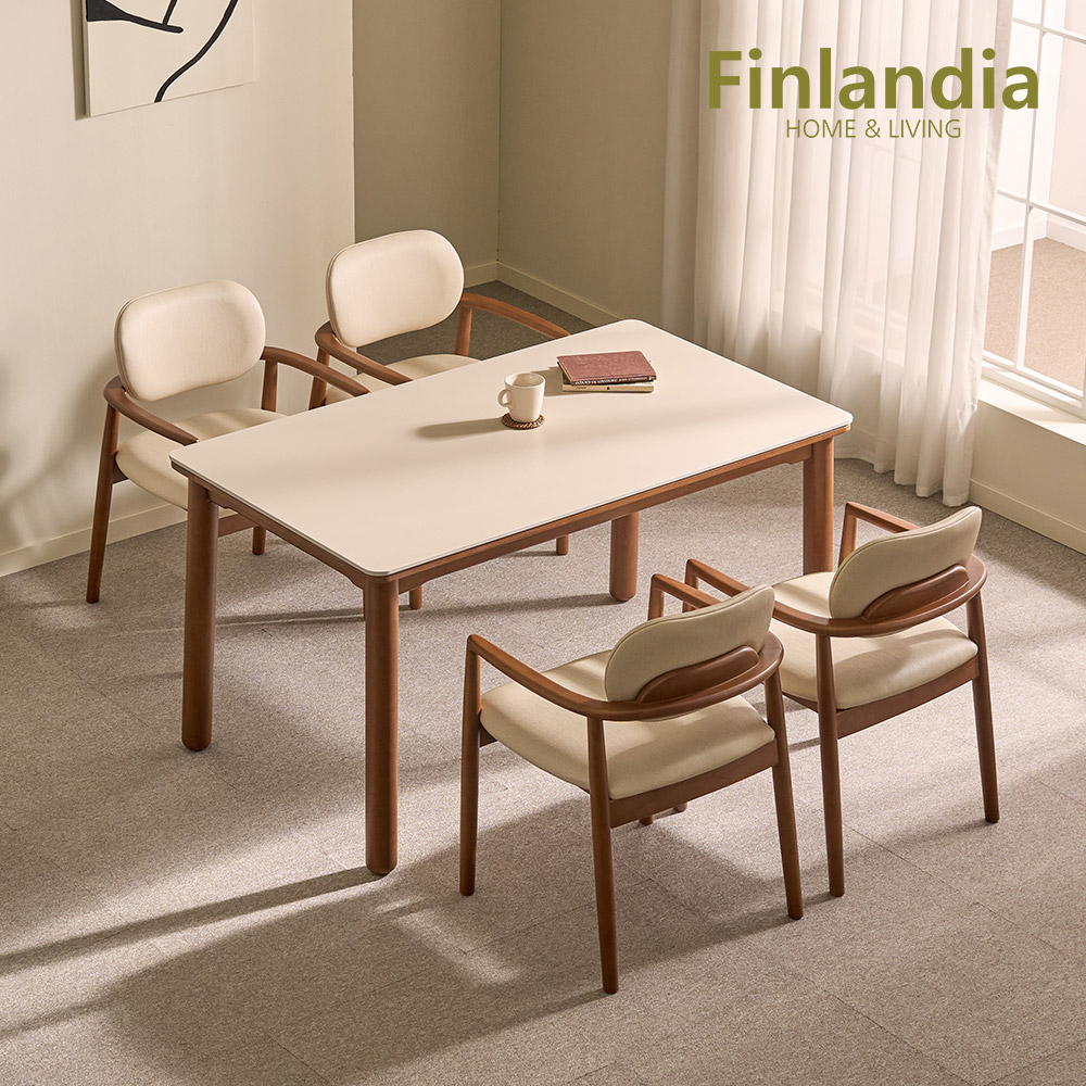 - 핀란디아 리에나 포세린 세라믹 애쉬원목 4인 식탁세트(의자4)