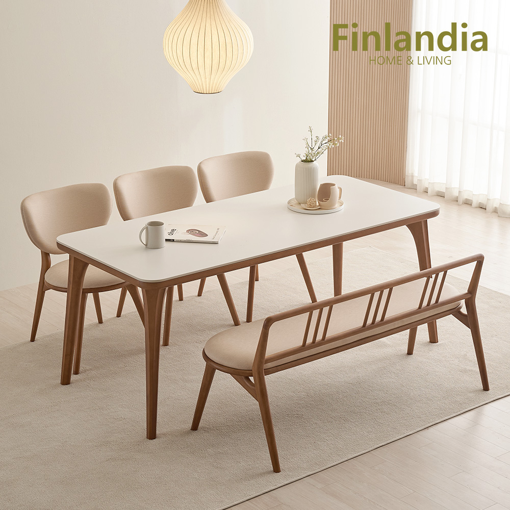 핀란디아 베른 포세린 세라믹 6인식탁세트(의자3+벤치1)