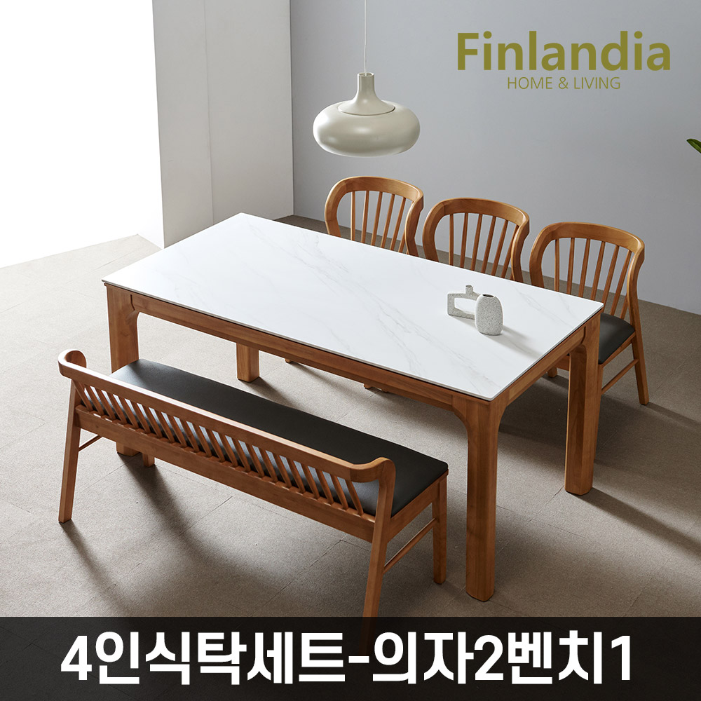핀란디아 르네 세라믹 4인식탁세트 (의자2벤치1)