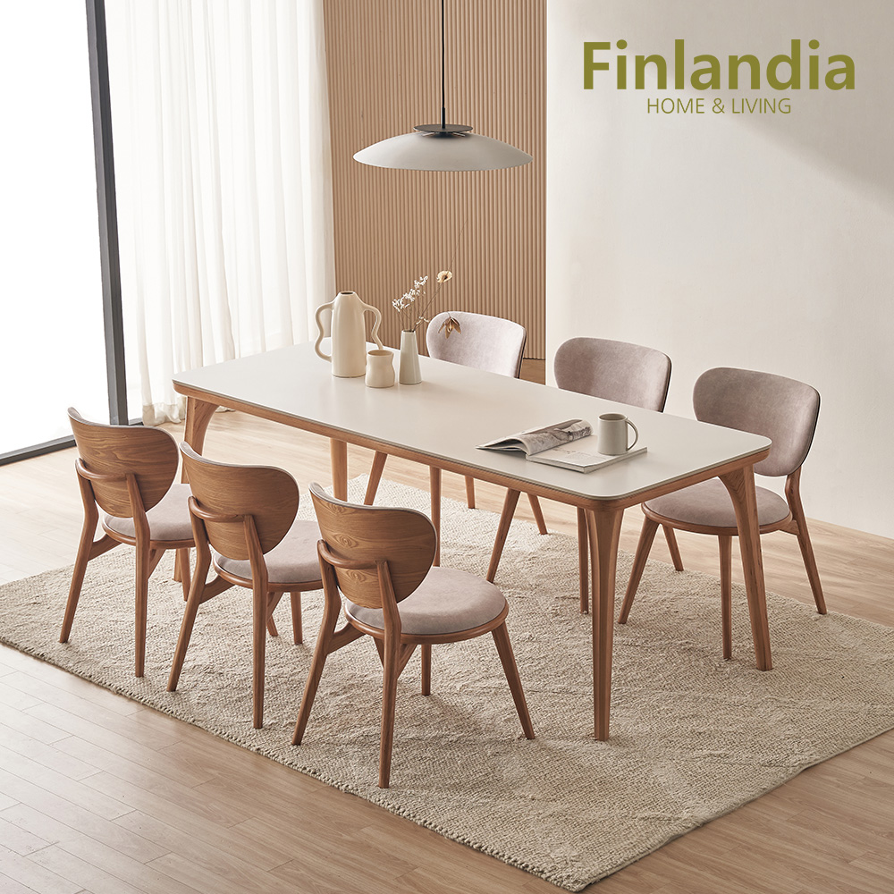 핀란디아 로이스 포세린 세라믹 애쉬원목 6인 식탁세트(의자6)