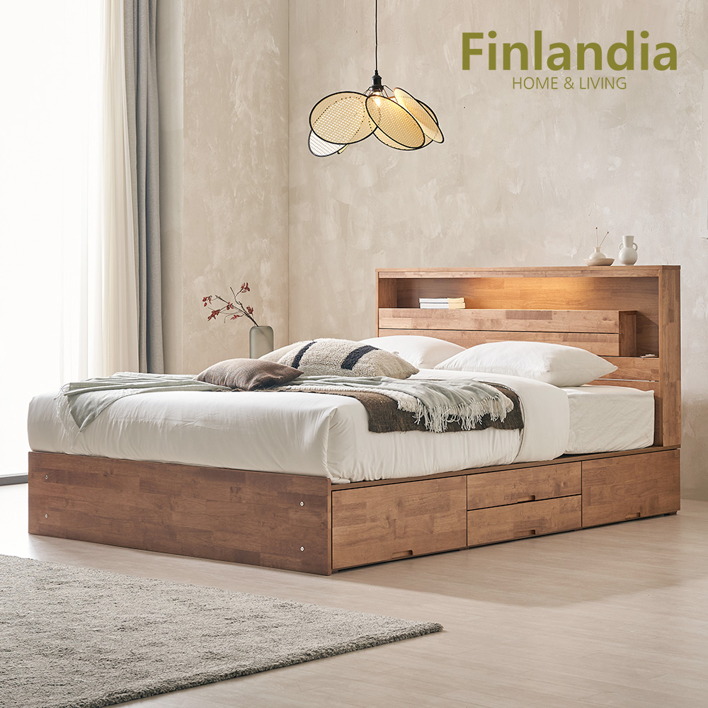 핀란디아 넬슨 LED 원목 수납침대 킹K